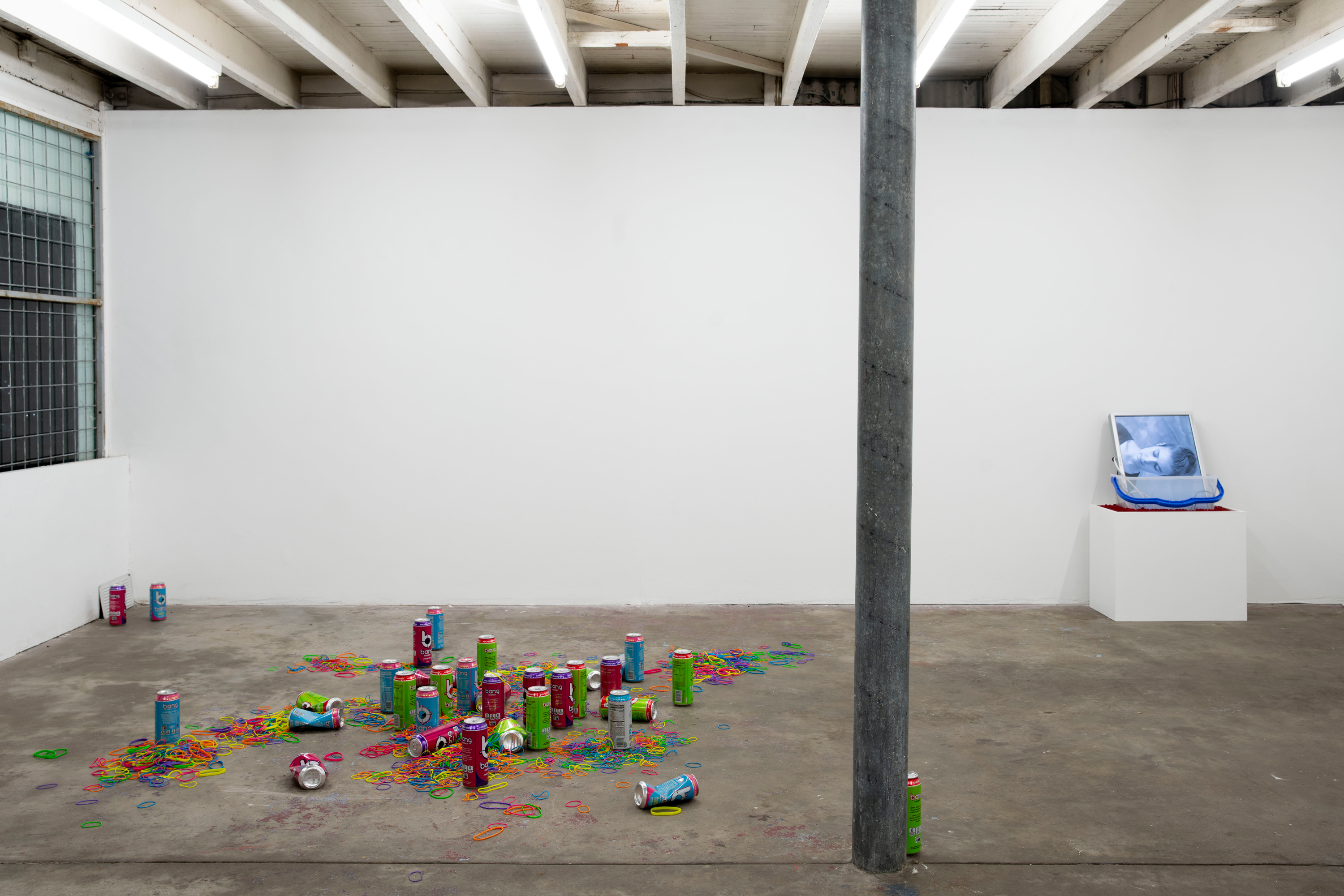 Caffeine is one of the fuels of 24/7 capitalism. In Quiet Quitting/Always On it is brewed, weighed, poured and drunk. In the readymade assemblage After Dylan Ayres caffeine is referenced by the energy drink Bang, which is a prominent feature of Dylan Ayres’ TikTok and YouTube compilation video, which documents an extended process of making a rubber band ball. This video is documented in a way that is reminiscent of contemporary art, in much the same way that, conversely, Peter Fischli and David Weiss’s The Way Things Go could be mistaken, in the current post-internet era, as the work of a couple of YouTubers.