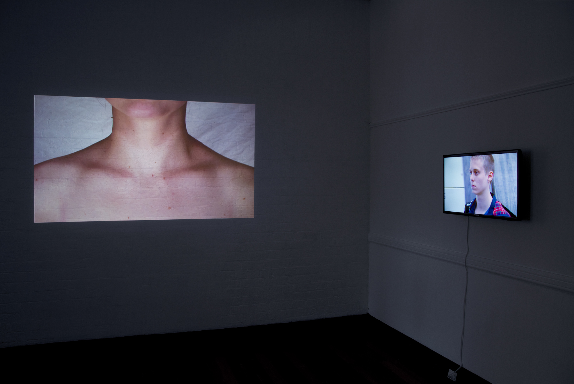 Installation View (Detail) Going Nowhere, Boxcopy, 2013. Hannah Raisin, Necklace #2, 2011. HD single channel video, colour, 16:9, 5:13 minutes.