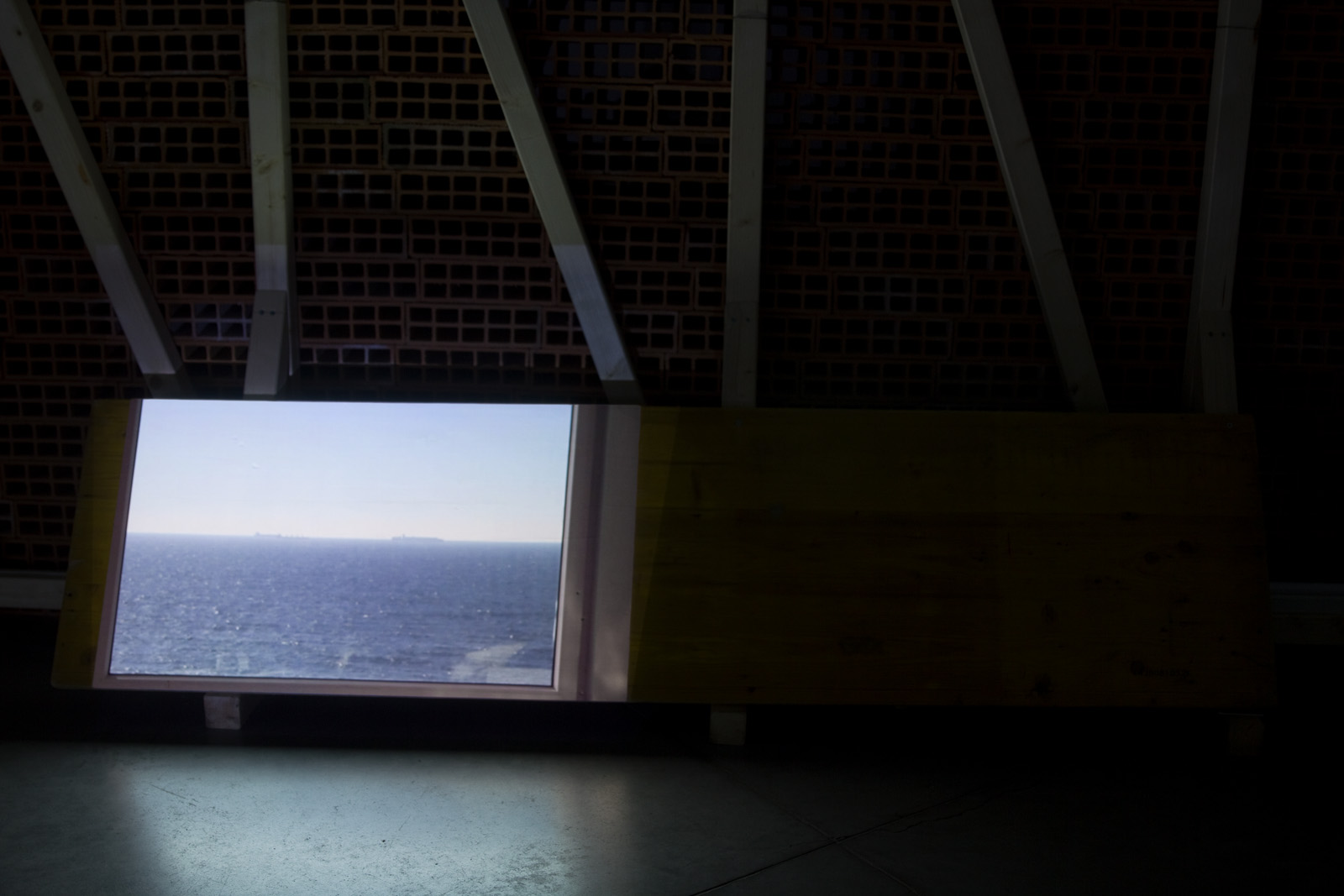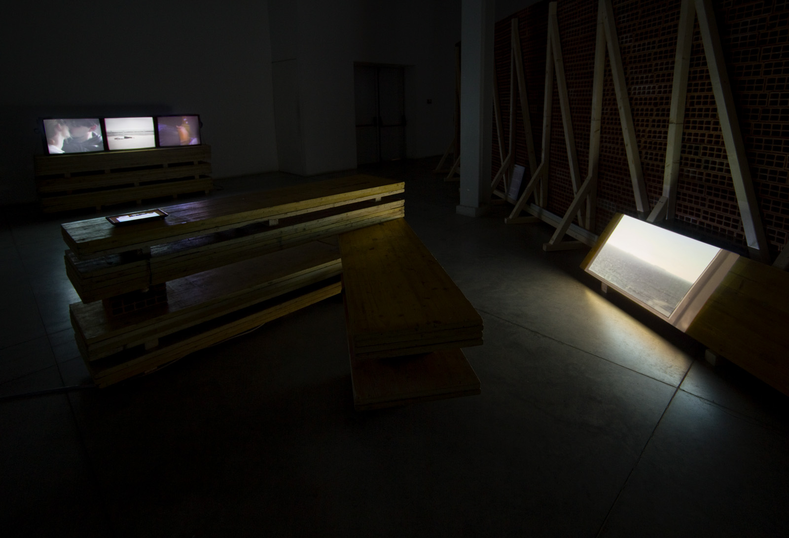 Simone Hine, The Wait, 2014, Site-specific video installation. Installation View.Moving Pictures / Expanding Space, Careof, Milan, 2014.