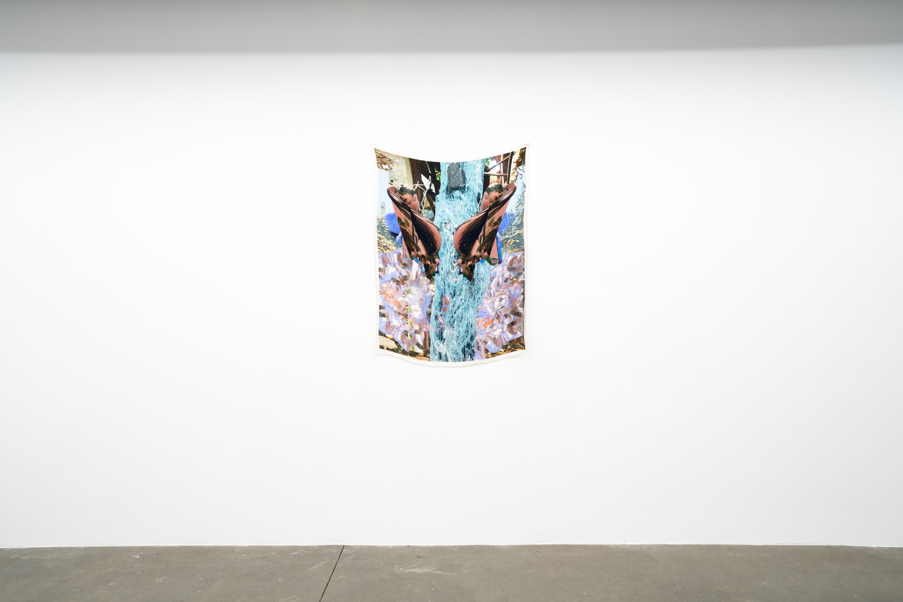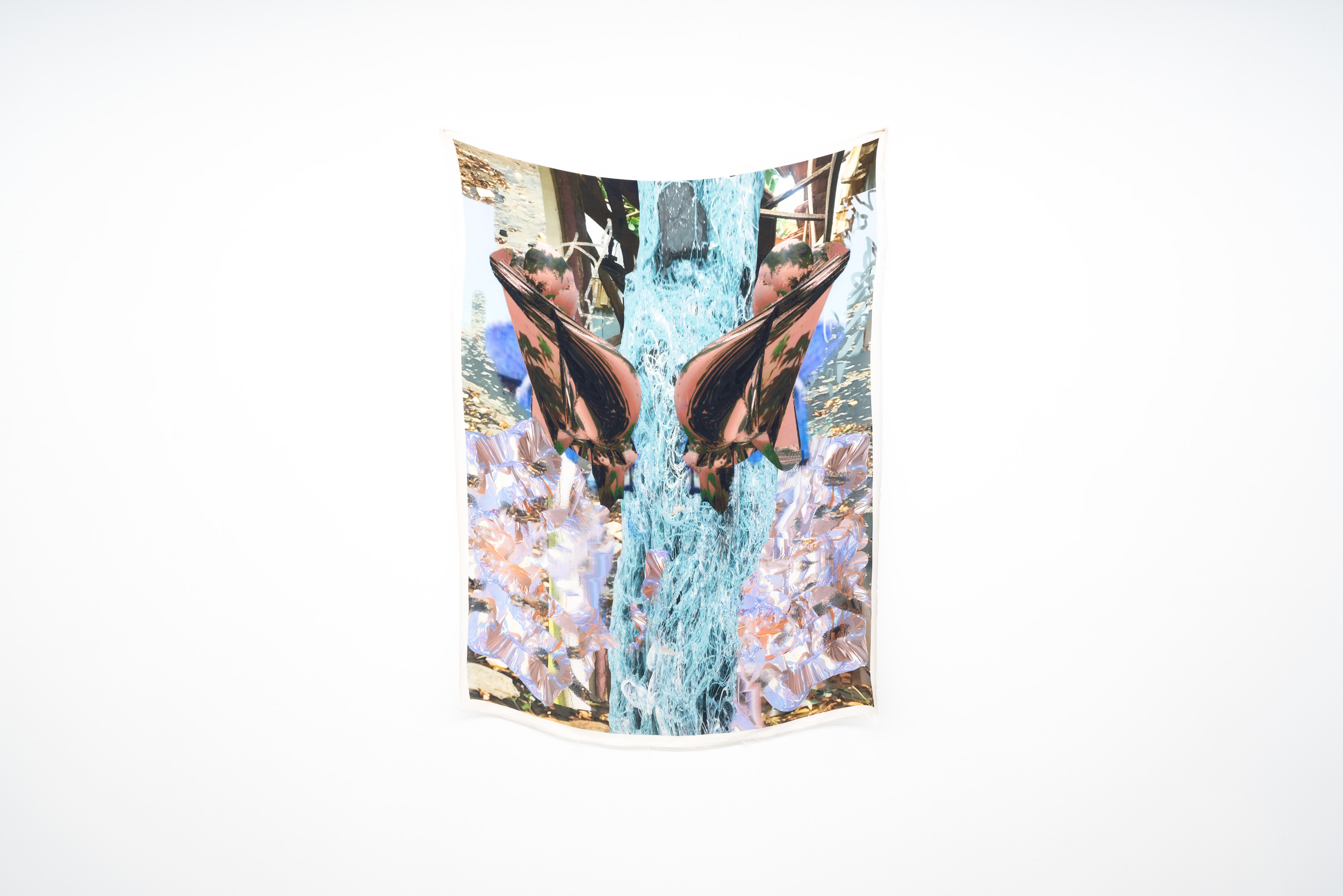 Marian Tubbs, my internet and ocean twin, 2017. Pigment print on silk, 100 x 75 cm. Courtesy the artist and STATION. Sediment. Installation View, Metro Arts, 2021.