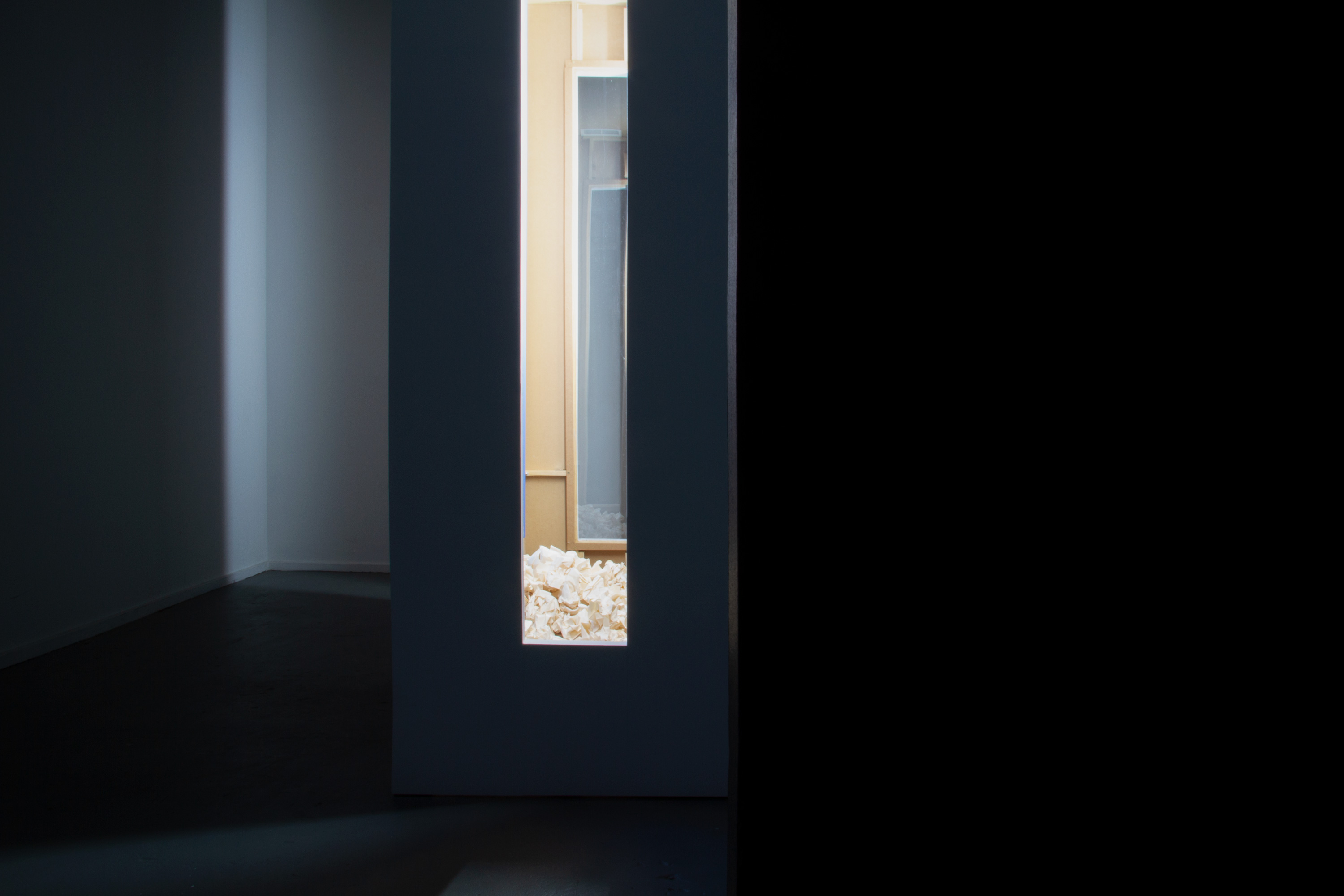 Running for two-days only, the work incorporated a performance element for the two-day duration of the exhibition. Set in a 1950s office, the work focuses on a simple gesture that is repeated. Mediated through video, the gesture repeats infinitely, but when performed live this same gesture is approximated through repetition.