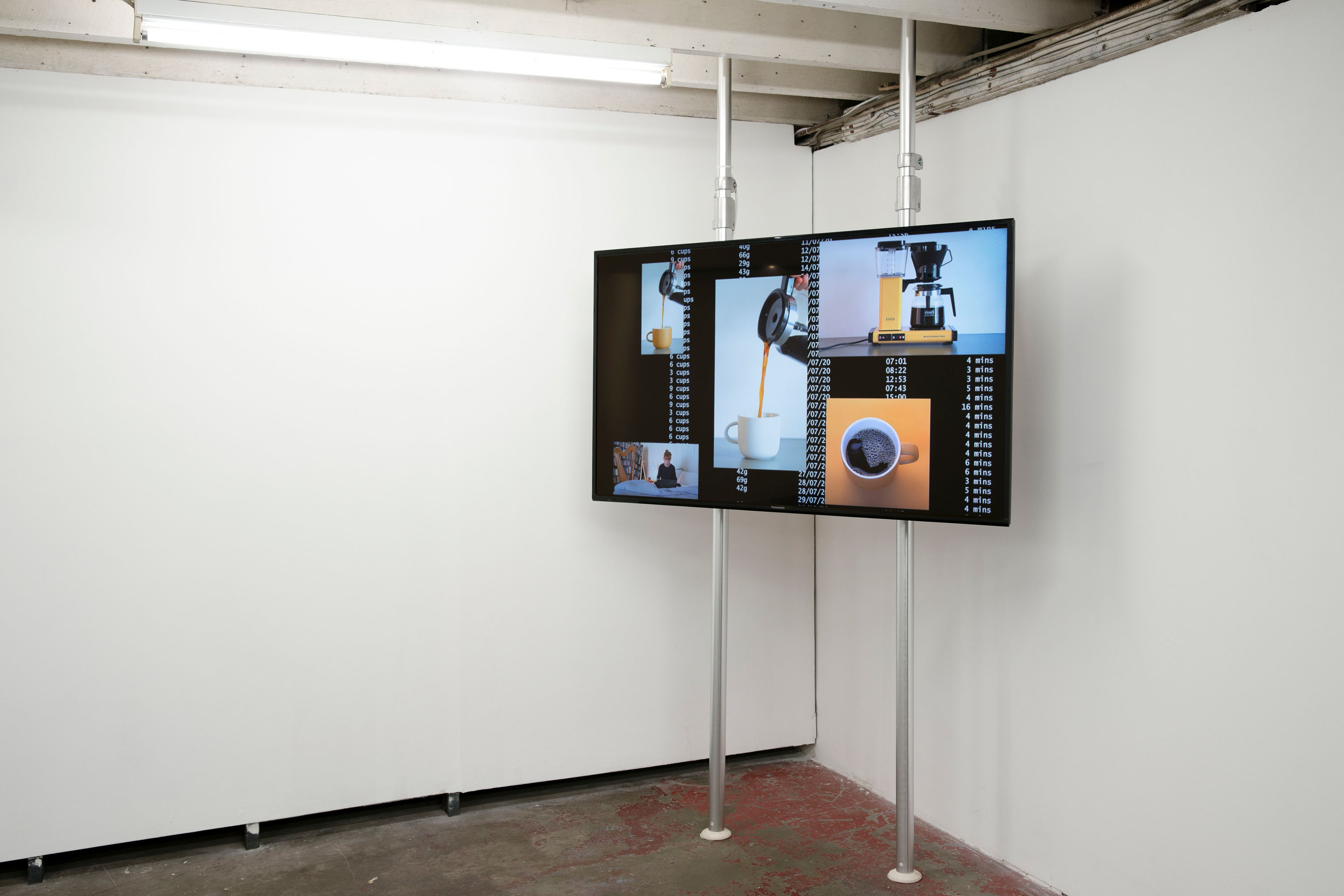 Caffeine is one of the fuels of 24/7 capitalism. In Quiet Quitting/Always On it is brewed, weighed, poured and drunk. In the readymade assemblage After Dylan Ayres caffeine is referenced by the energy drink Bang, which is a prominent feature of Dylan Ayres’ TikTok and YouTube compilation video, which documents an extended process of making a rubber band ball. This video is documented in a way that is reminiscent of contemporary art, in much the same way that, conversely, Peter Fischli and David Weiss’s The Way Things Go could be mistaken, in the current post-internet era, as the work of a couple of YouTubers.