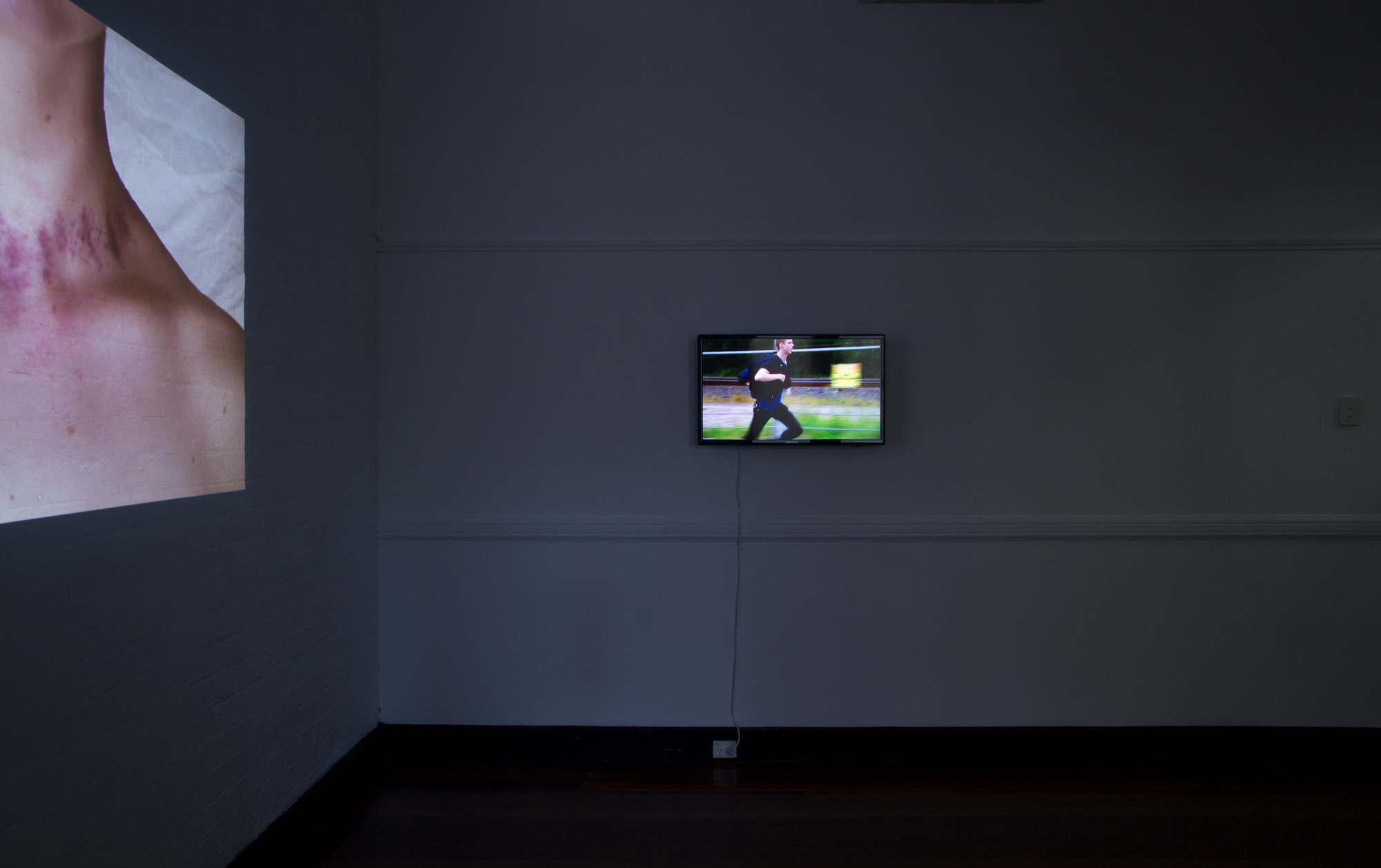 Installation View (Detail) Going Nowhere, Boxcopy, 2013. Hannah Raisin, Necklace #2, 2011. HD single channel video, colour, 16:9, 5:13 minutes.