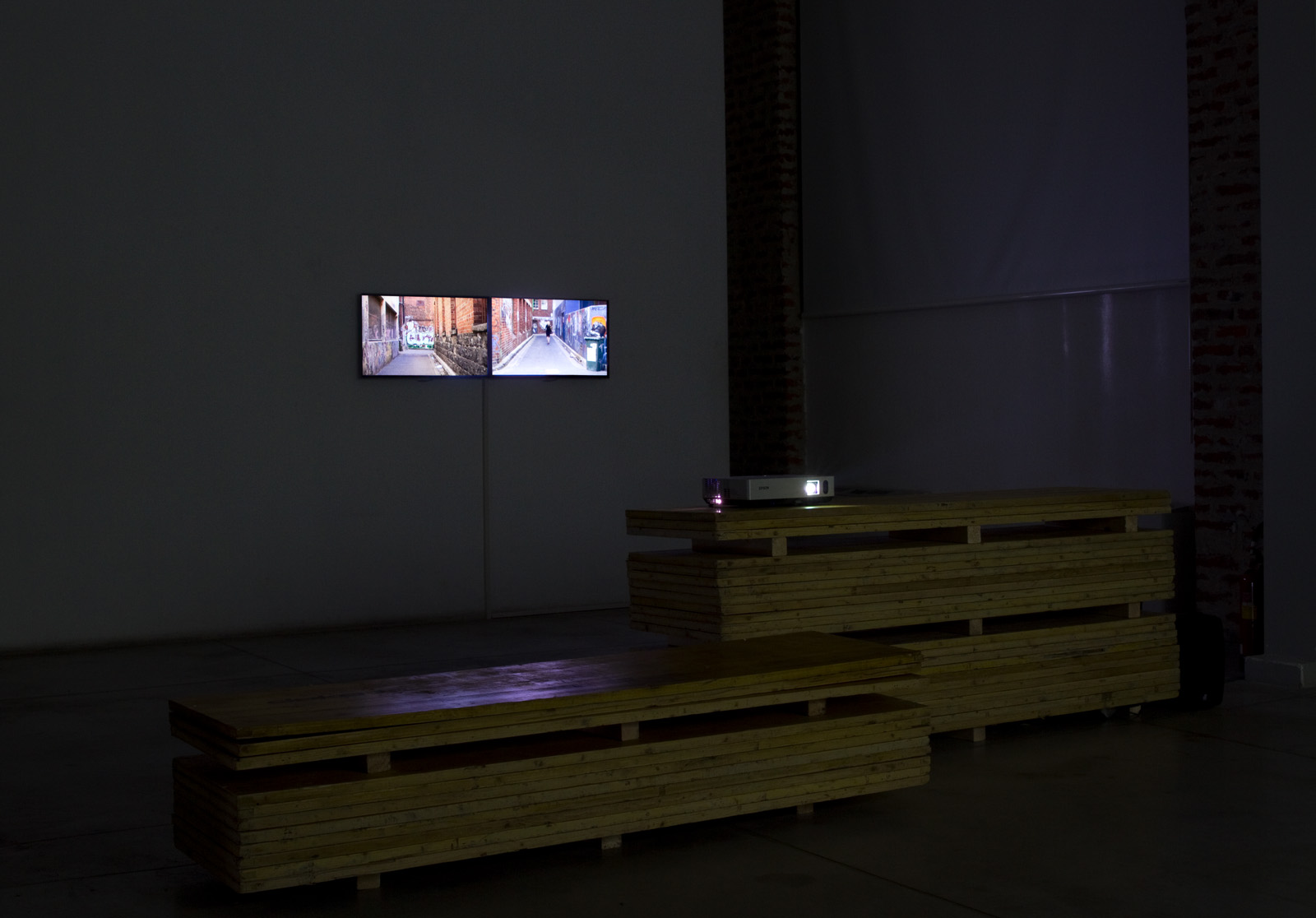 Simone Hine, The Wait, 2014, Site-specific video installation. Installation View.Moving Pictures / Expanding Space, Careof, Milan, 2014.