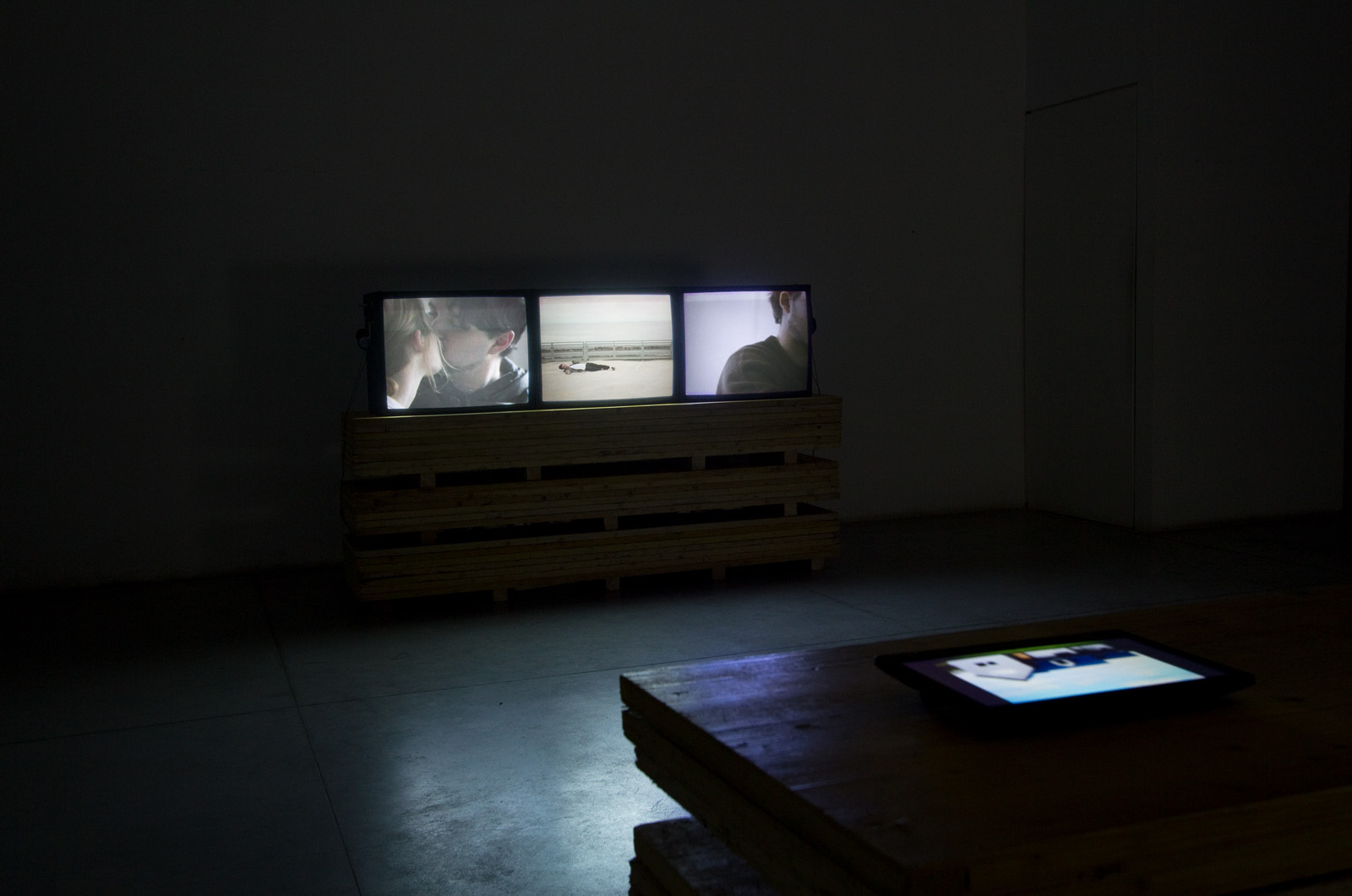 Timothy Casten and Jacqui Shelton, Screens, 2012, 3 Channel HD Video, Stero Sound, loop. Installation View.Moving Pictures / Expanding Space, Careof, Milan, 2014.