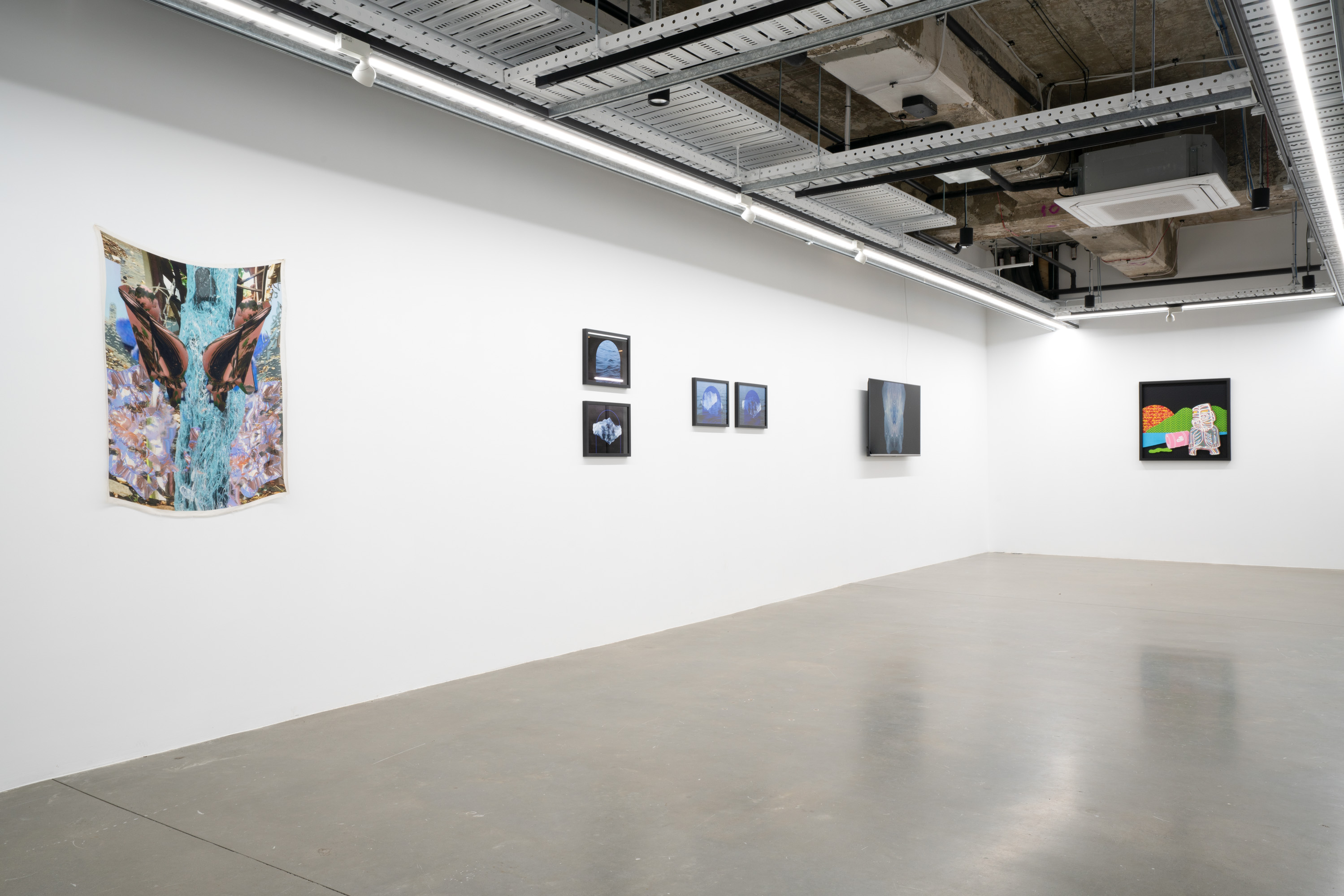 Marian Tubbs, my internet and ocean twin, 2017. Pigment print on silk, 100 x 75 cm. Courtesy the artist and STATION. Sediment. Installation View, Metro Arts, 2021.