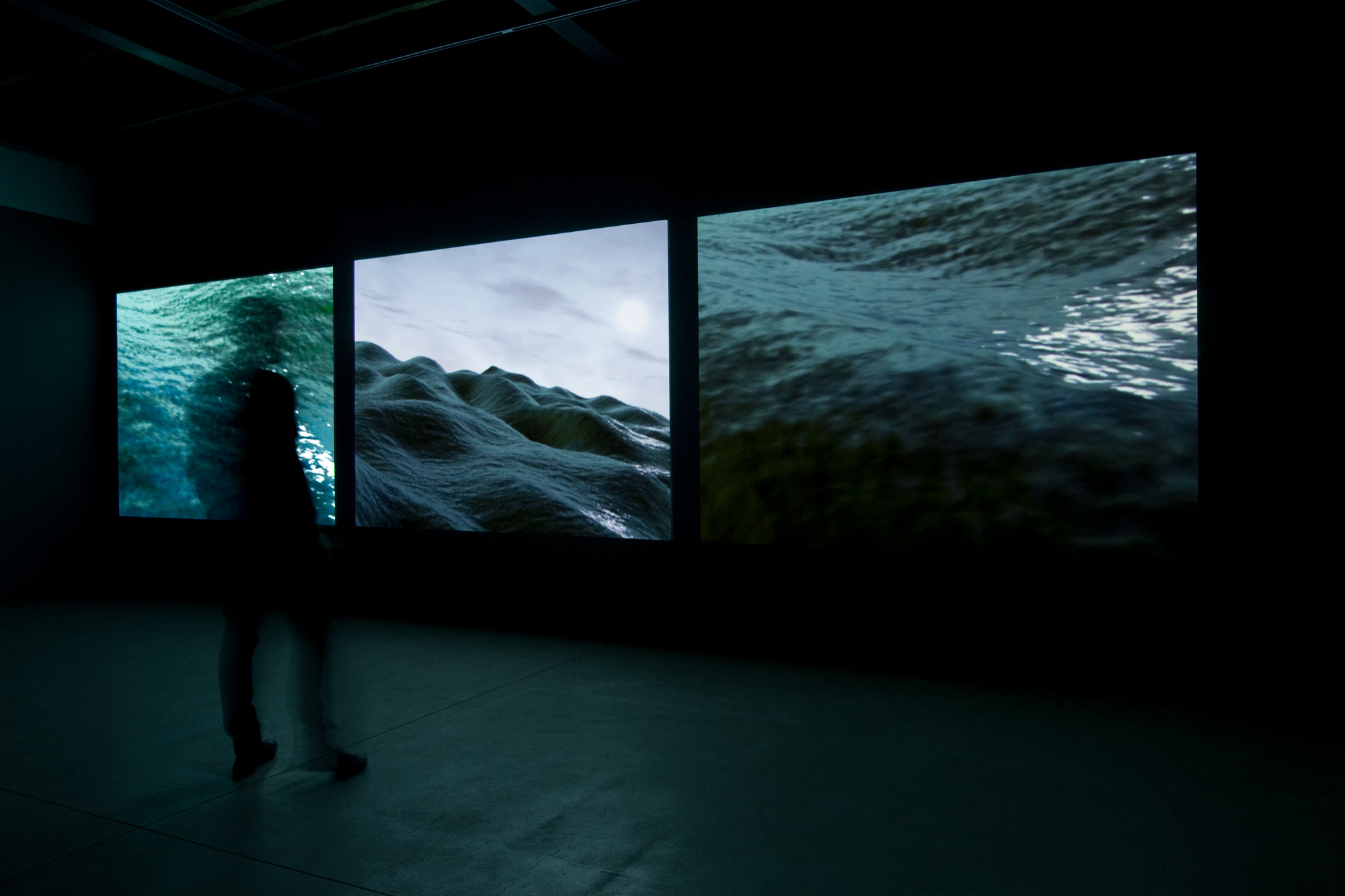 Patricia Piccinini. Swell, 2000, Three Channel Video Installation. Courtesy the artist, Tolarno Galleries, Melbourne and Roslyn Oxley 9 Gallery, Sydney. Installation View. Screen Space, 2014.